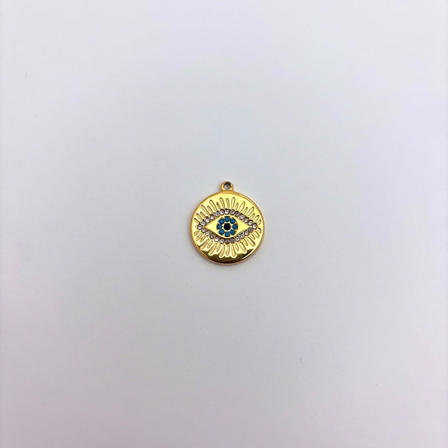 Gold Çelik Nazar Boncuklu Göz Takı Ucu 18 mm-1 Adet